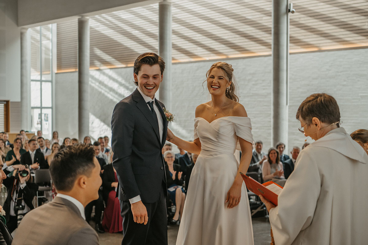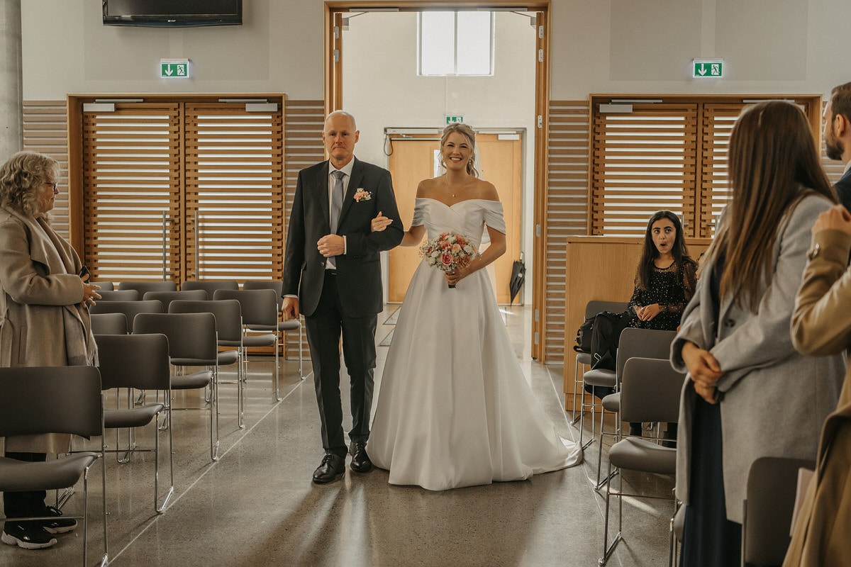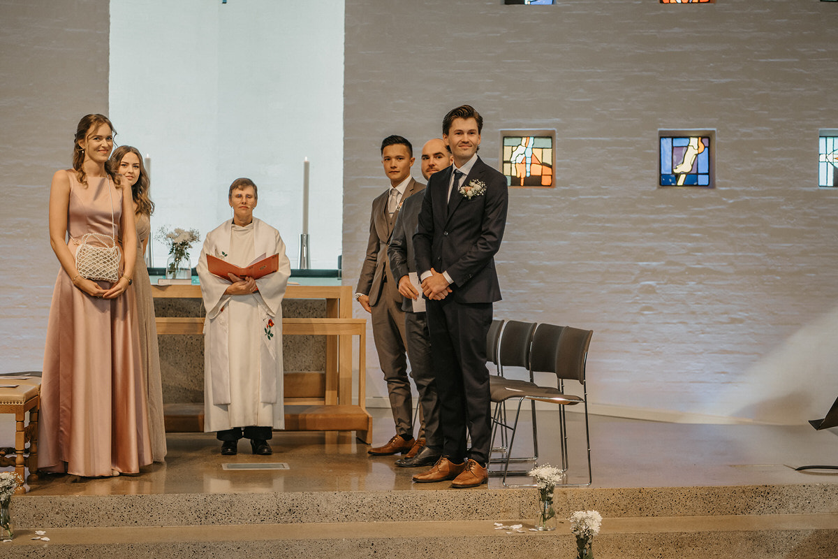 Sunniva og Eirik giftet seg en regn og vindfull lørdag i slutten av September. Når Sunniva ankom kirken så åpnet slusene seg skikkelig, og det så dårlig ut for oppholdsbilder senere på dagen.Etter en nydelig vielse i Rægekirken så ble det jammenmeg opphold i 30 minutter. Og det var alt vi trengte for å få tatt nydelige bilder i Sandvedparken.