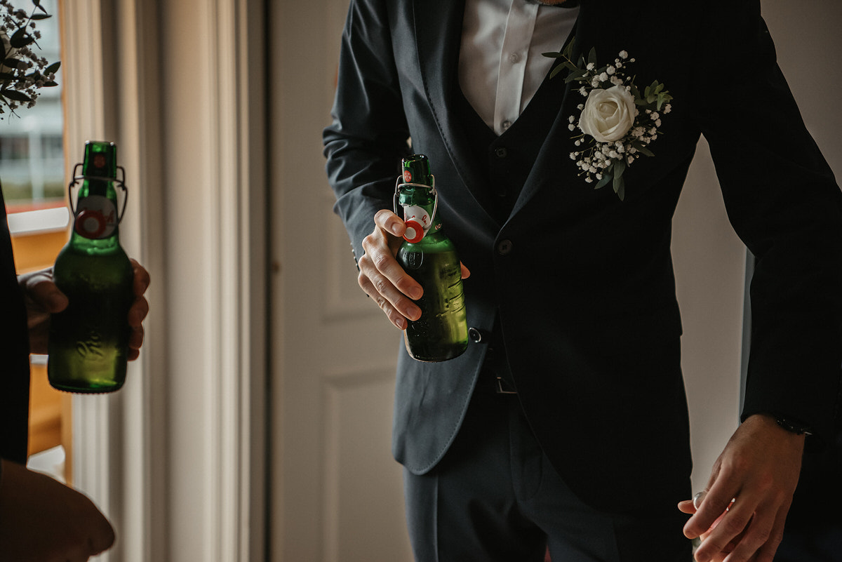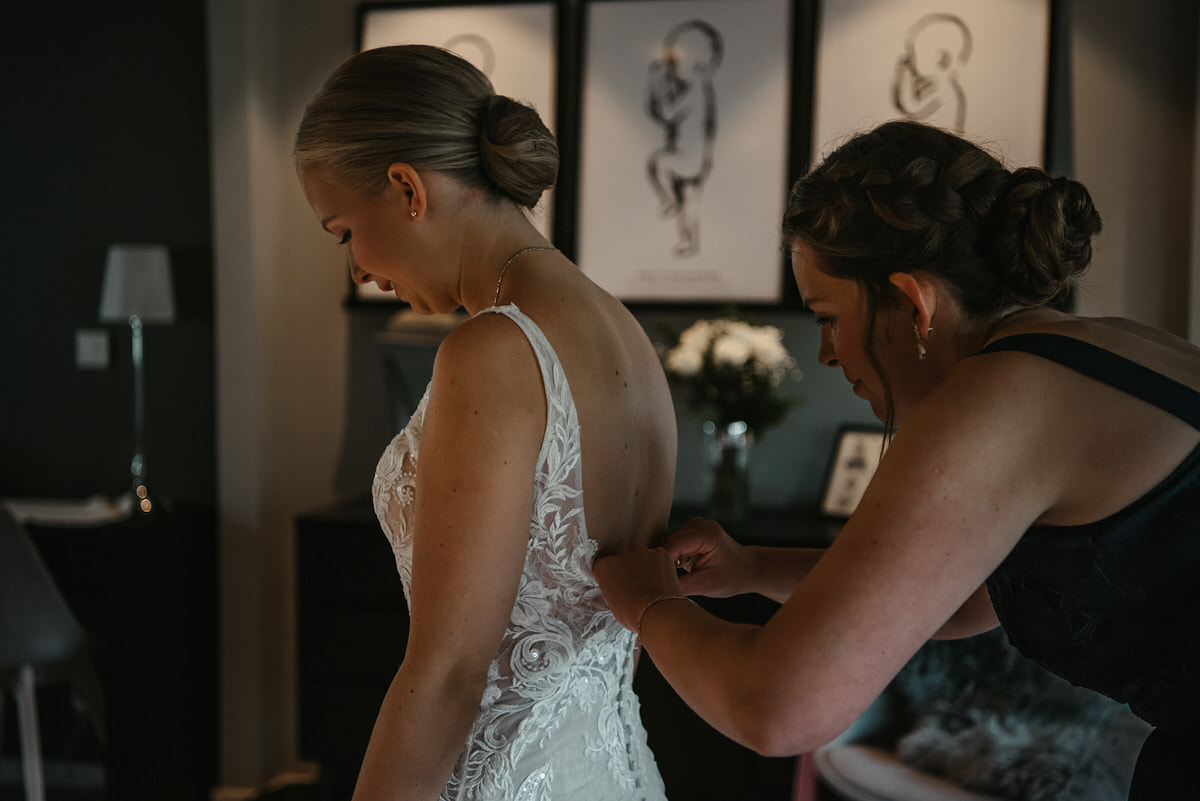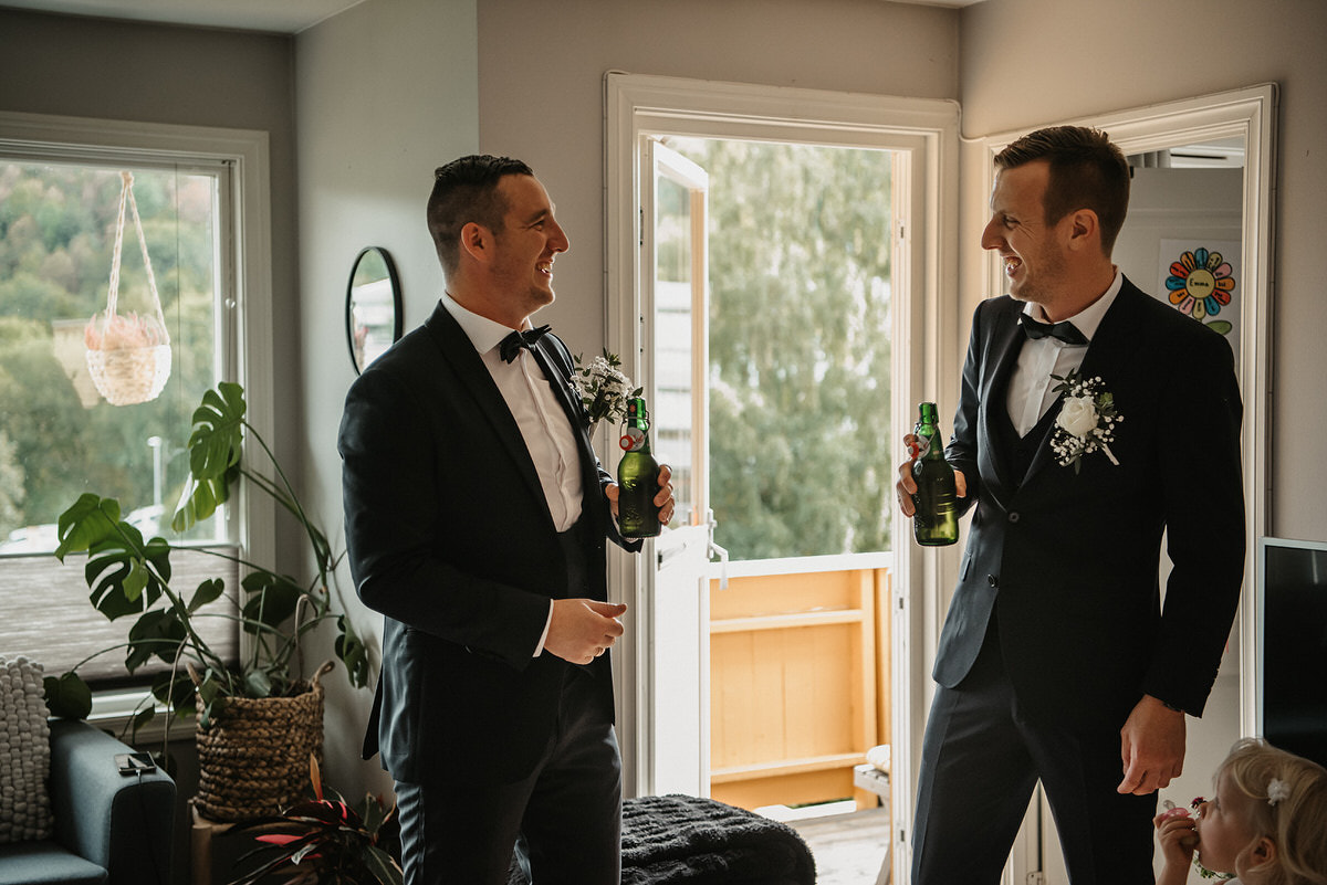 Heldige meg som fikk reise til Bergen for å forevige kjærlighetshistorien til Tina og Kim. Jeg startet dagen hjemme der Kim hadde sine forberedelser og reiste deretter hjem til Tina og Kim der hvor hun gjorde seg klar for dagen. Å få være med på forberedelsene er virkelig spesielt, det er en så spesiell tid av dagen. Forventningene er store og hele dagen er foran oss.